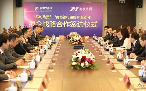 近日,廊坊银行与盈时集团银企战略合作签约仪式在燕郊高新区百世金谷燕郊国际产业基地成功举行,燕郊高新区工委委员、管委会副主任雷大庆,经济发展局局长赵越,廊坊银行行长邵丽萍,盈时集团董事长张永铁等出席签约仪式。